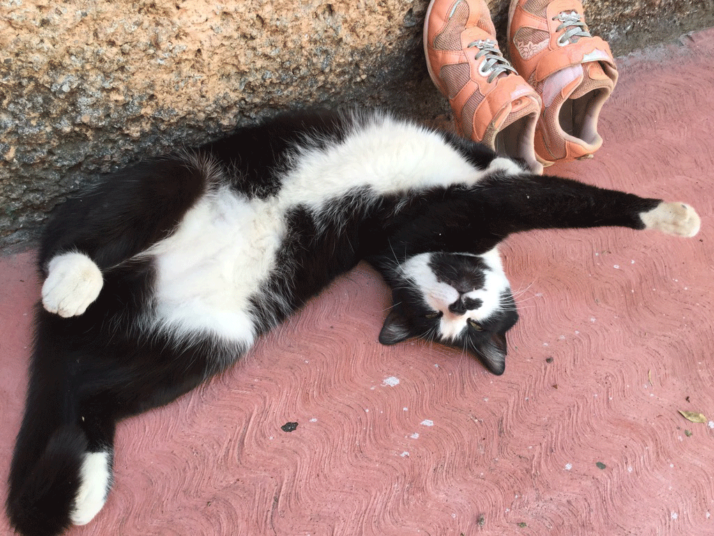 3時、咲子宅訪問。だらしなく寝そべる猫ゴマ。餃子、そしてきゅうり、トマト、さぼてん(湯がくとぬるぬるする)、香菜のみじん切りサラダ。夫のエスパルタはシティでの仕事で出かけている。チャプルテペックでの演劇に出演しているという。