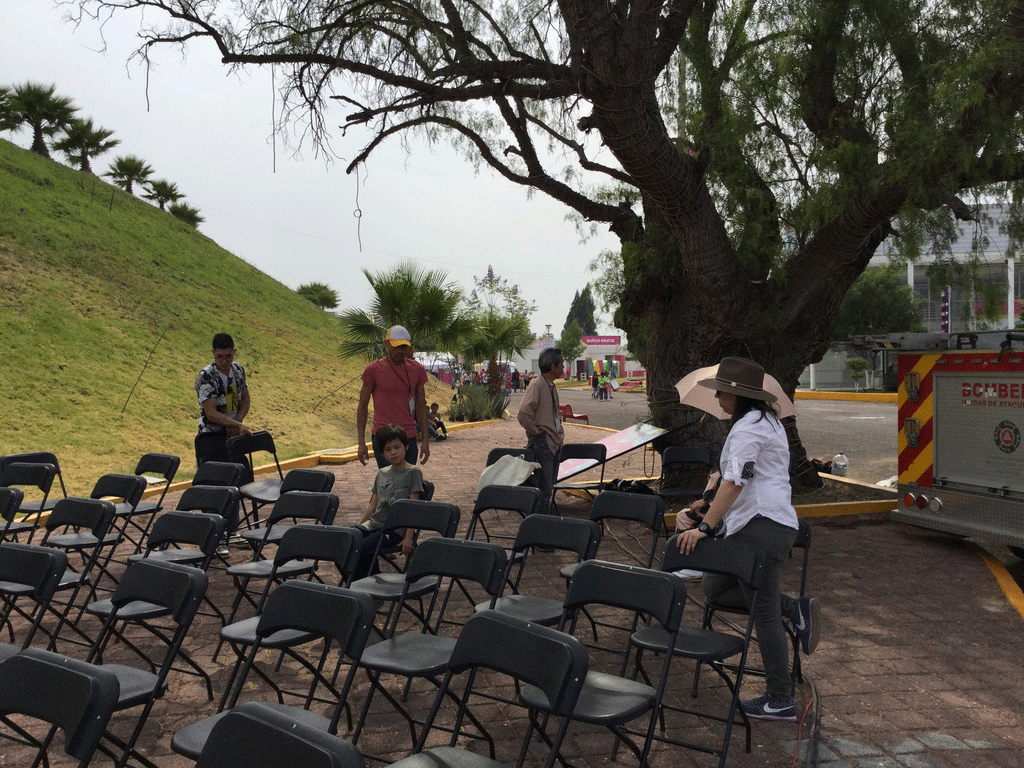 会場は、ミチョアカンお祭り広場と訳すべきかCentro de Espectaculos de la Expo Fiesta Michoacán。市街地から離れた丘陵地に忽然と現れる広大なテーマパークだ。だだっ広い駐車場からモダンなデザインの大きな病院の建物が見えた。