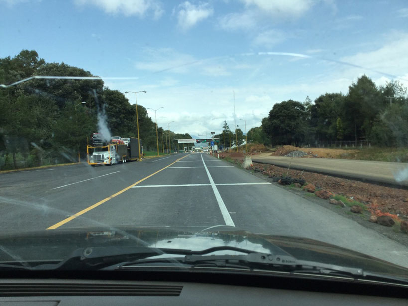 カルロスと別れ、降ったり止んだりの高速道路をパツクアロに向かって走りつつ、プリシリアーノがお土産でみんなもらった甘めのパンをかじりながら話す。