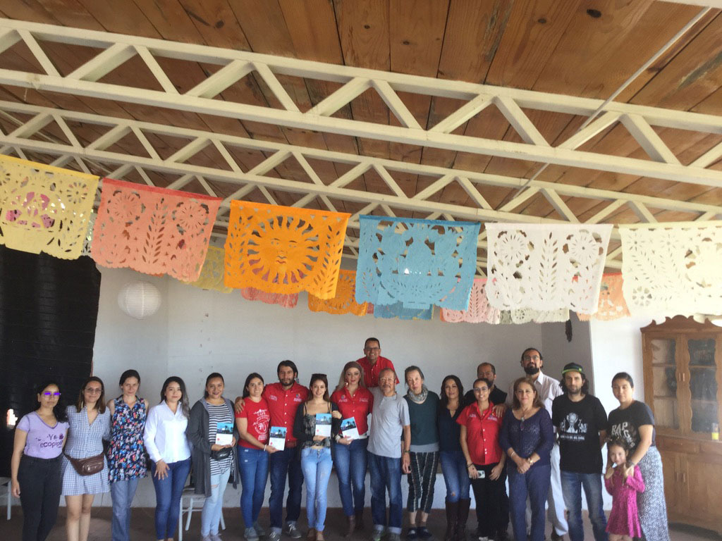象くん(岩本象一さん)作詞、HIROS作曲のCAP音頭スペイン語バージョンを歌ってくれたドゥルセ、森田由希子さんの誕生パーティーを自宅で開いてくれた当時の市役所担当者のカルラ、商工会議所会頭のロシオ女史と一緒に来たヒゲの紳士フアン、プリシリアーノ、先ほどのハイメとマルガリータ、ピアニストのエステバンと母のラウル、レストラン「バーガー」のベニートおっさん、サカテカス出身で最近タカンバロに引っ越してきたという眼科医(名前失念)と大きなお腹を抱えた妻、会期中ずっとお世話になったマリナの友達のルビの他に、ミニ市場に出店していた3人の女性が参加。プエブロ・マヒコ委員会のユニフォームである赤いシャツを着ていたのはプリシリアーノ、ハイメ、マルガリータ、眼科医の妻の4人。眼科医の妻がきっと新しく委員会に加わったのだろう。