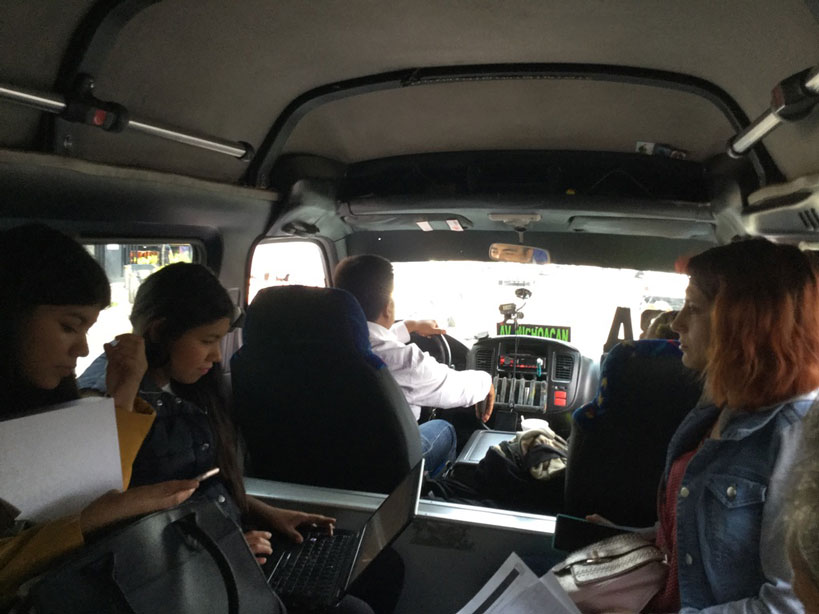 彼らと別れ広い通りを歩き出したが、まもなくセントロと書いたコンビがやってきたので乗った。料金は二人で18ペソ。天気も良く、パツクアロに比べてずっと暖かかった。