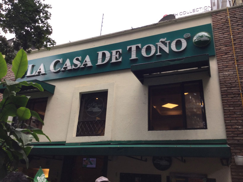シティ有数の高級住宅地にある「メキシコ一のタコス屋」つまりLa Casa de Toño(トニョの家)の前には長い行列ができていた。入り口に立つ若い女性が続々やってくる客に整理券を配っていた。我々がもらったのには965番と書かれてあった。女性は「待ち時間は15分くらいよ」と言う。列の中には男同士のカップルがやたら目に付く。若い男のゲイ・カップルはなんとキスをしたり抱き合ったりしている。この地区が特に多いのかはなんとも言えないが。