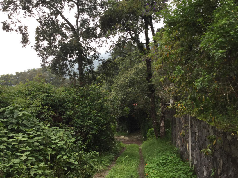 バスは豪華なボルボだった。ディスプレーが真上にある最前列に座りしばらく待つと定刻の14時22分にバスが発車した。廃線になった路面電車沿いにしばらく走ってから市街地を抜け高速道路に出た。高速道路は蛇行しながら高度を上げていく。集落を見下して進むうち、周囲の景色は農場や牧場、森林、山に変わリ、霧によって次第に視界がぼやけた。峠を越えると蛇行した道を降り始める。岩肌がむき出しになった断崖のある山々が見えたと思ったらテポストランTepoztlánのバスターミナルに到着した。ガソリンスタンドとカフェや雑貨屋のある建物があるだけの場所だった。雑貨屋でビール、タバコ、ミルクを買ってしばらく待つと家住さんが現れた。4時頃に着くと連絡していたが、実際着いたのは3時半頃だった。カフェでコーヒー豆を買った家住さんの車に乗ってセントロへ。