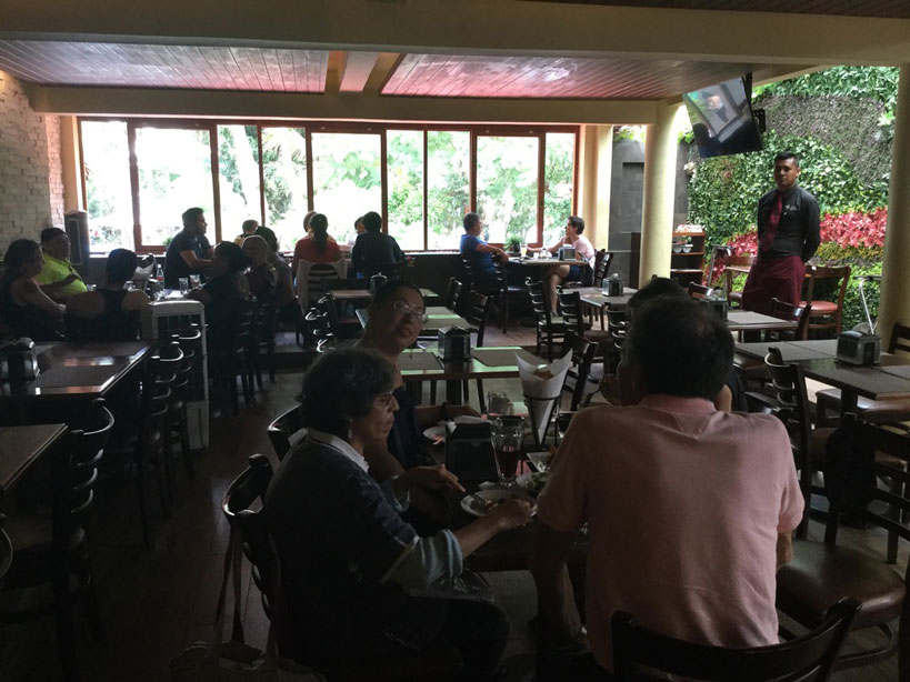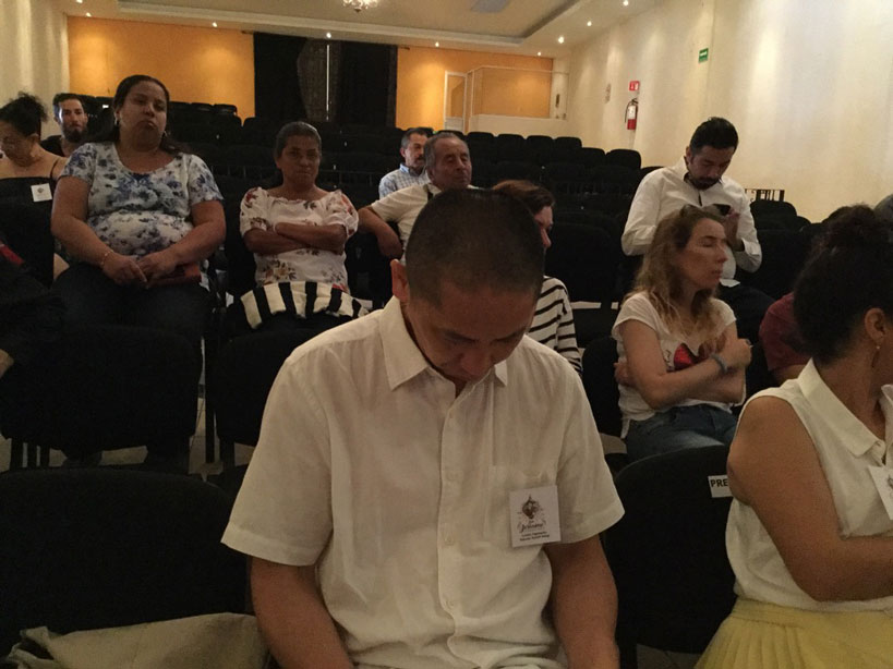 我々は早起きなので、7時15分開店のレストランでコーヒーを飲んだ。8:30に主催関係者との朝食となっていたので階下のレストランで到着を待った。昨日会ったサマディと建築家の夫エドソン、アルタグラシアが合流。久代さんはトマト、玉ねぎ、ピーマンの入ったスクランブルエッグ・メヒカーノ(赤、緑、白の国旗の色からだろう)、それに上からチーズをかけたフリホーレスにかちんかちんのトルティーヤであるトスターダが刺さっている。ベジタリアンだというサマディもメヒカーノ。ワダスは目玉焼き。エドソンが赤いソースのかかった目玉焼き。アルタグラシアは何も食べずコーヒーのみ。予定表の通訳つまり矢作氏は会場で直接落ち合うことになっていた。我々と通訳氏の朝食3人分は供与となっていたが、エドソンは自分の分を払った。
