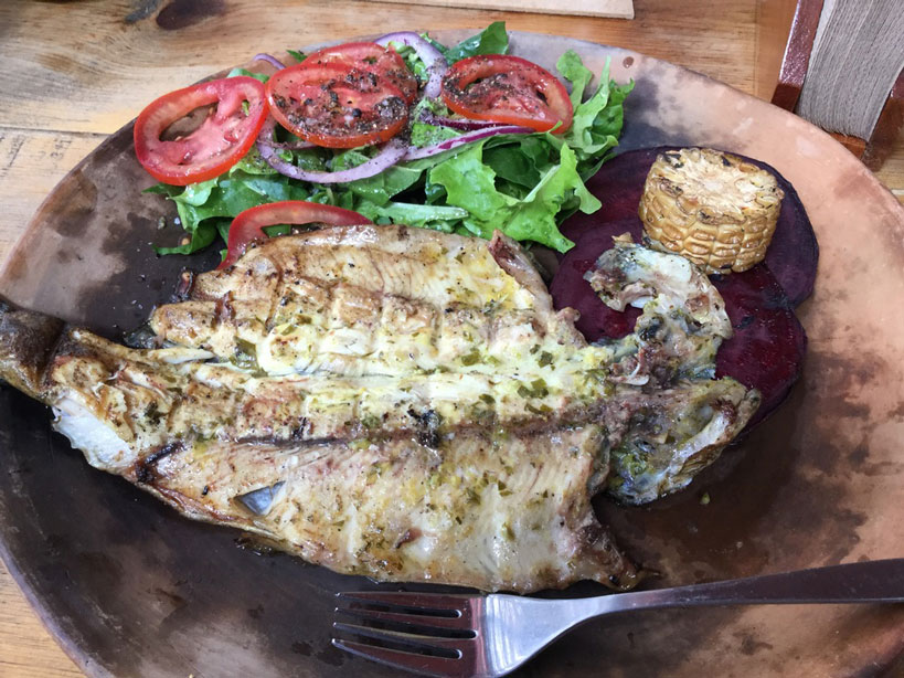 アルマンドがこの近くにいいレストランがあるけどどうかと言う。ジャンタルの車でそのレストランCervecería Brújulaへ行くと、さっきコンサートに来ていた人たちの一団が食事をしていた。ジャンタルが店主らしい男女に何か話してから「ここではビールも肉もあるし、なんでも好きなものが食べられるわよ」と言って去っていった。確かにそうだったが、食事代はこっちもちだった。
