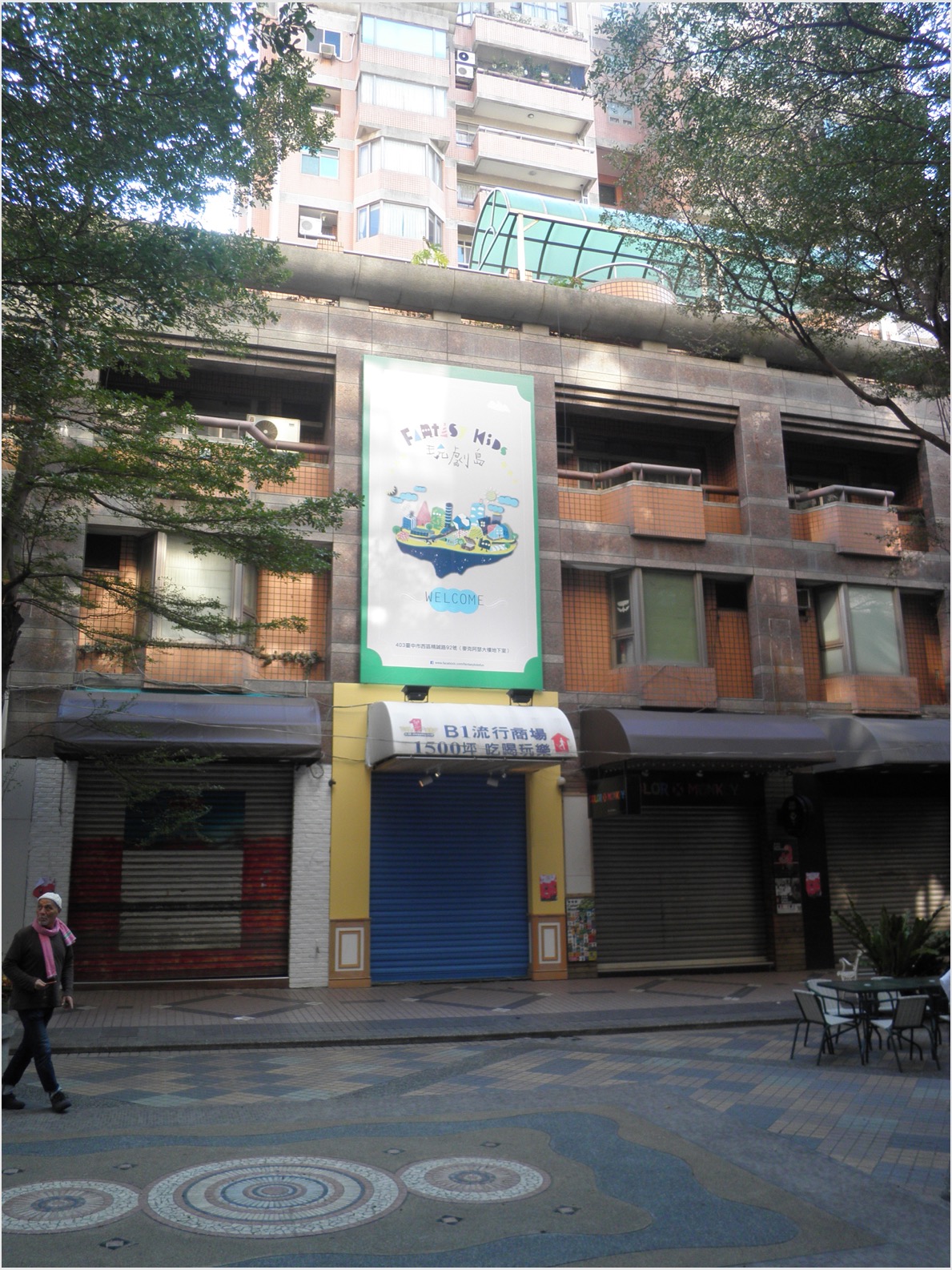 朝食を終えて遊歩道の一角にあるパフォーマンスの会場をチェックした。控え室のあるビルの対面に、出来上がっていたはずのFantasy Kidsの看板が見えた。その入り口から地下に降りると施設に通じる予定なのだ。