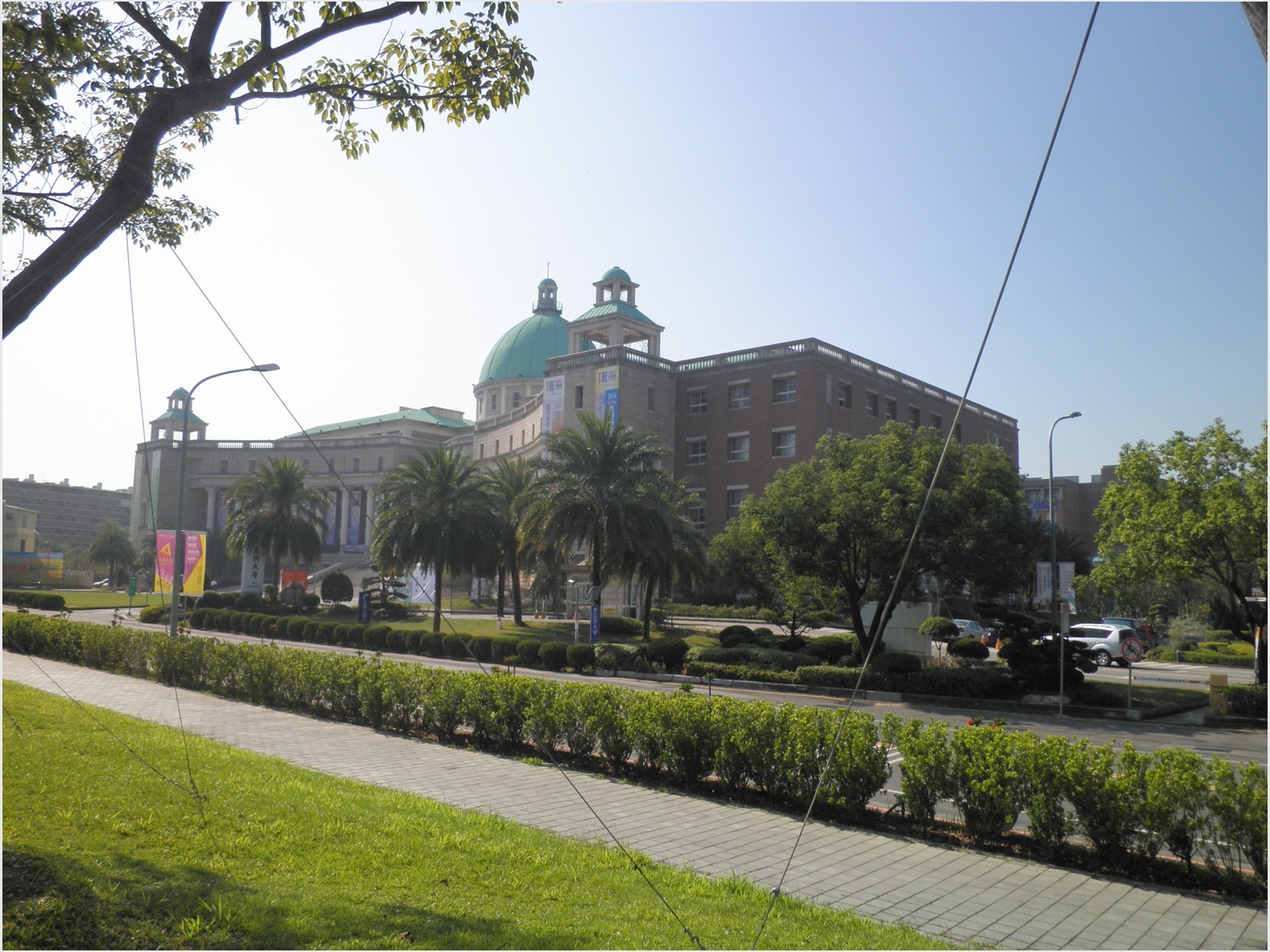 工事中の高架鉄道を見上げつつ台中市中心部を抜け南下した。大きな川を越えてしばらくすると、亜州大学が見えてきた。台中国立歌劇院からは1時間近くかかったことになる。