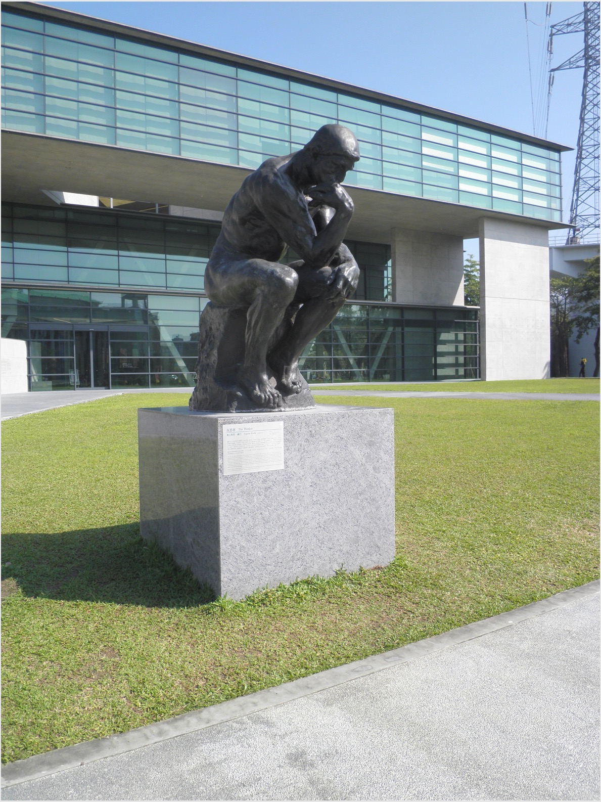 ゆるい傾斜のある芝の前庭にロダンの「考える人」が佇んでいた。世界に20数個あるオリジナルの一つだ。