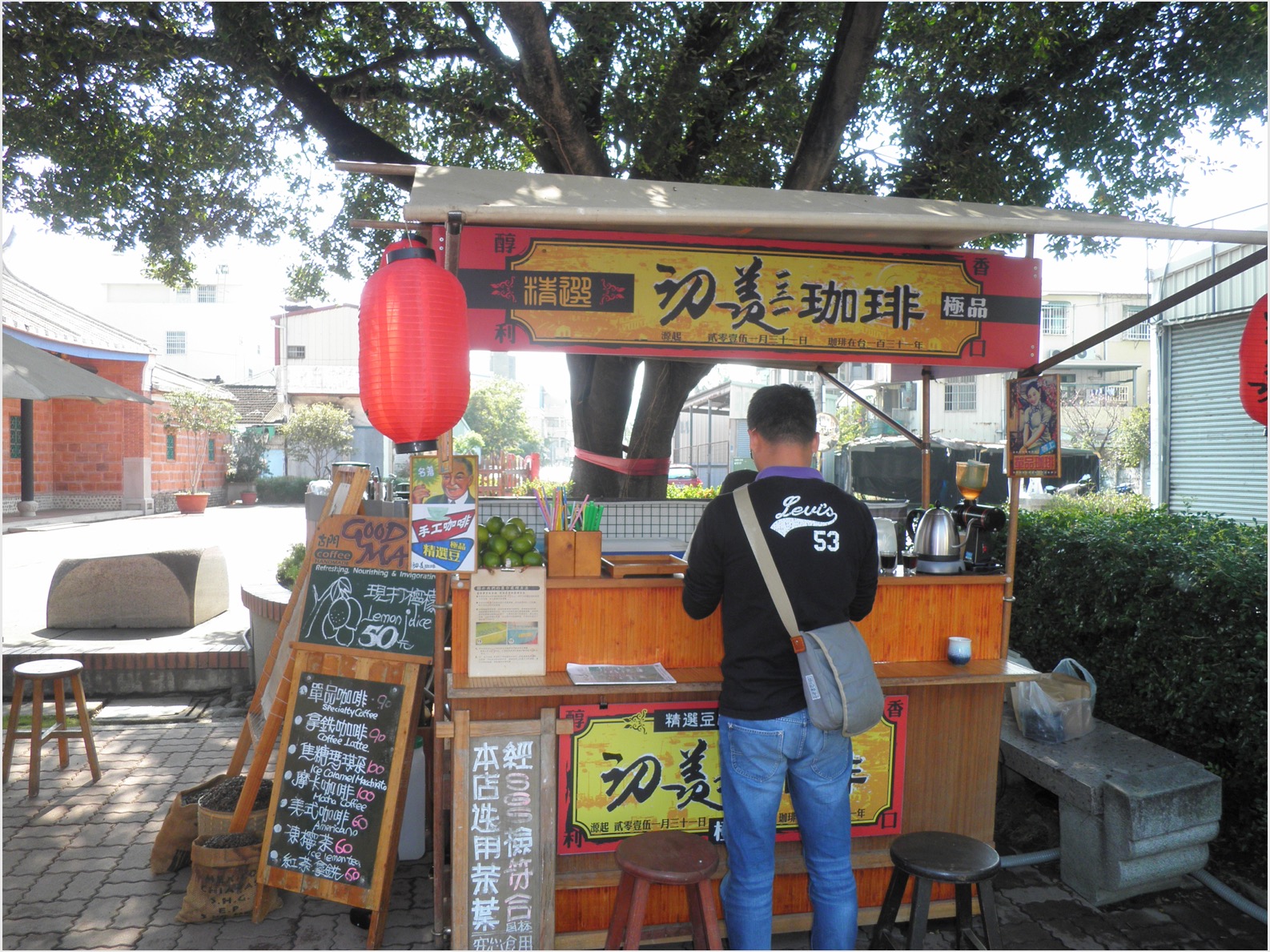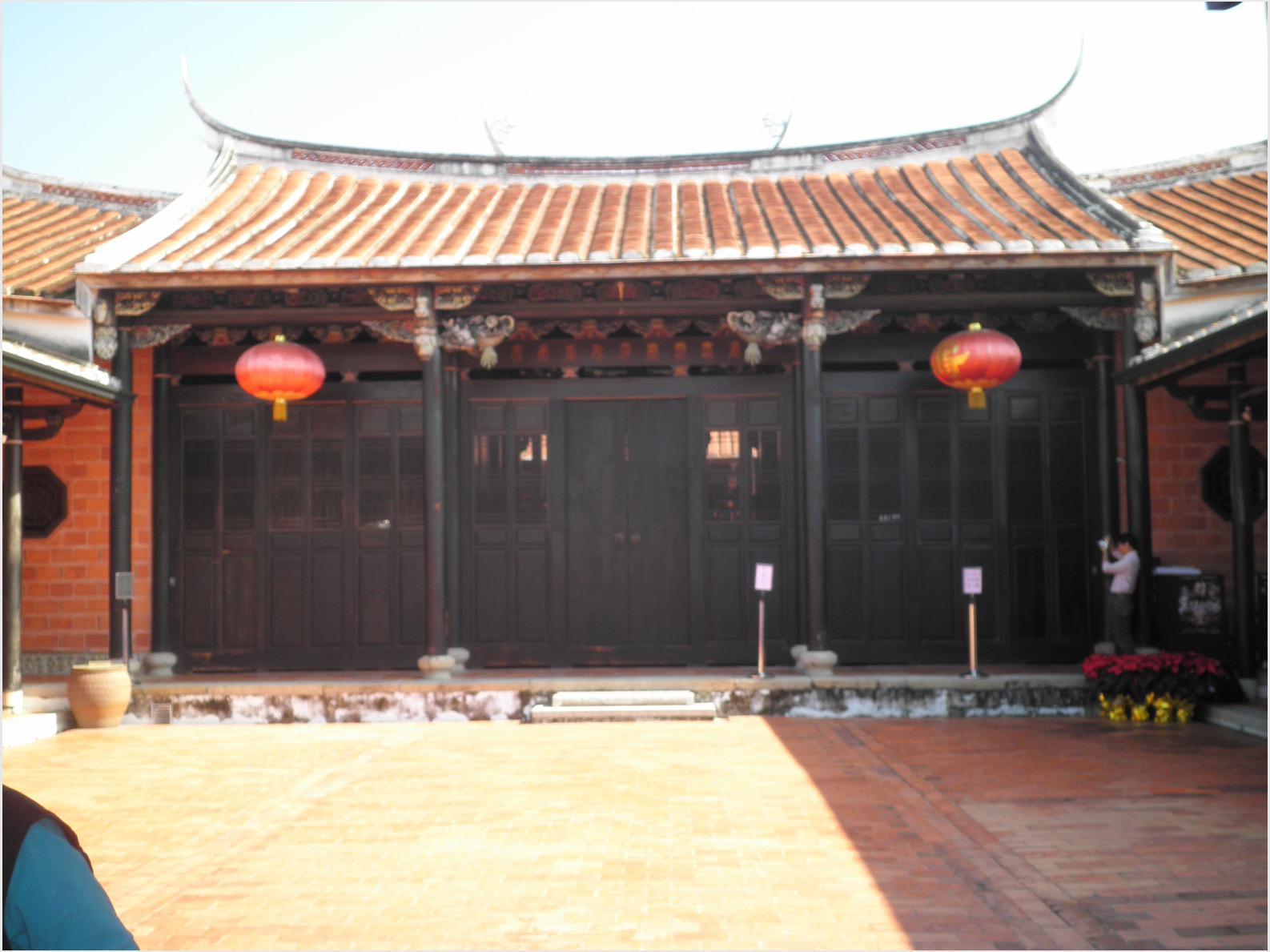 ほどなく目的地に着いた。赤レンガの平屋建ての大きな屋敷だった。「林府」と書かれた門が見えた。両端の反り返った瓦屋根、破風、細かな彫刻のある飾りつきの開口部などのある伝統的な屋敷だった。ちらほらと観光客の姿はあったが、小さな土産物屋は閑散としている。代々この地区の有力者だった林家が建てたお屋敷で、現在も一家が住んでいるという。雲ひとつない快晴で、汗ばむほどの陽気だった。Facebook写真