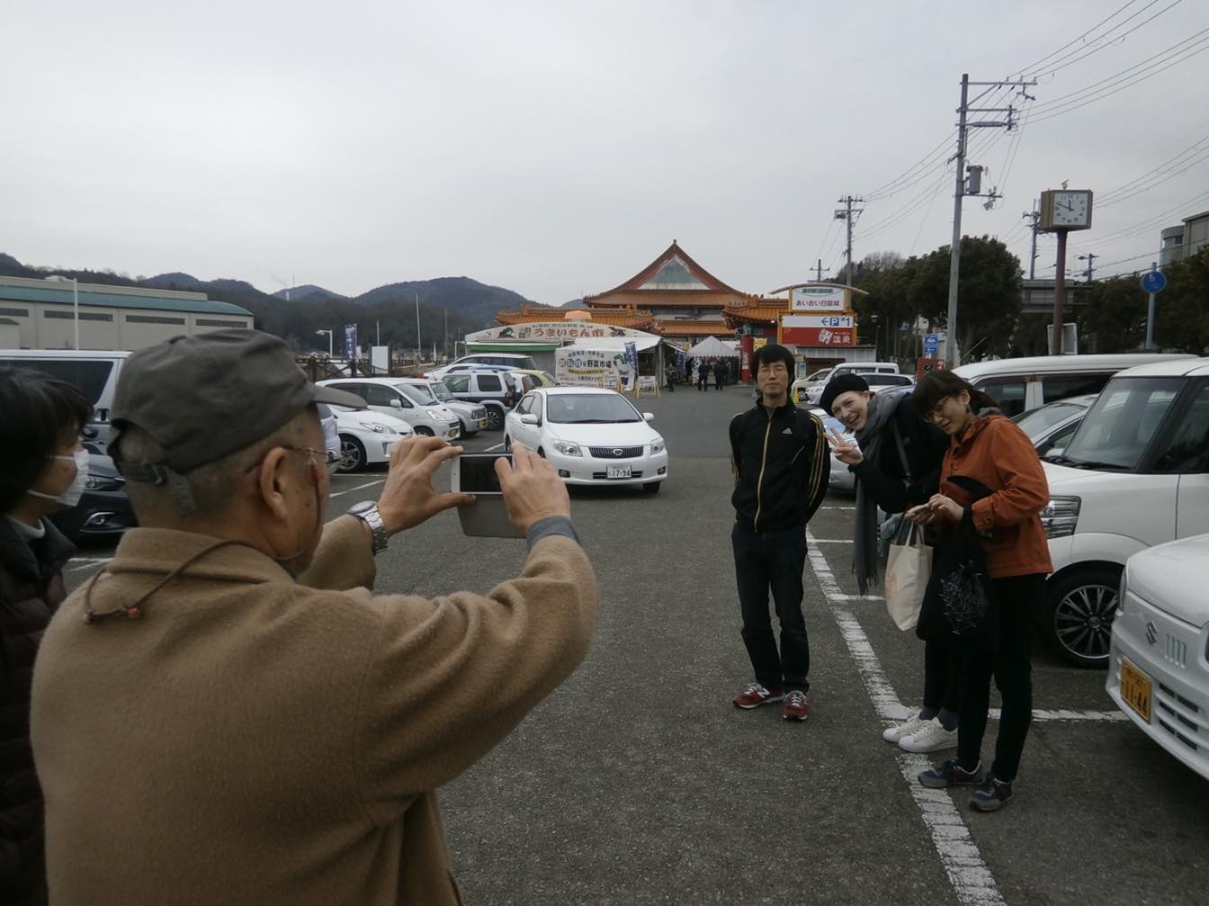 トミー君の借りてきたバンで三宮を出発し、まず「道の駅 あいおい白龍城」で温泉に浸かる。黄や赤のけばけばしい台湾寺院風道の駅の2階ペーロン温泉露天風呂からは曇天下の瀬戸内海が見下ろせ、実に気持ちがいい。
