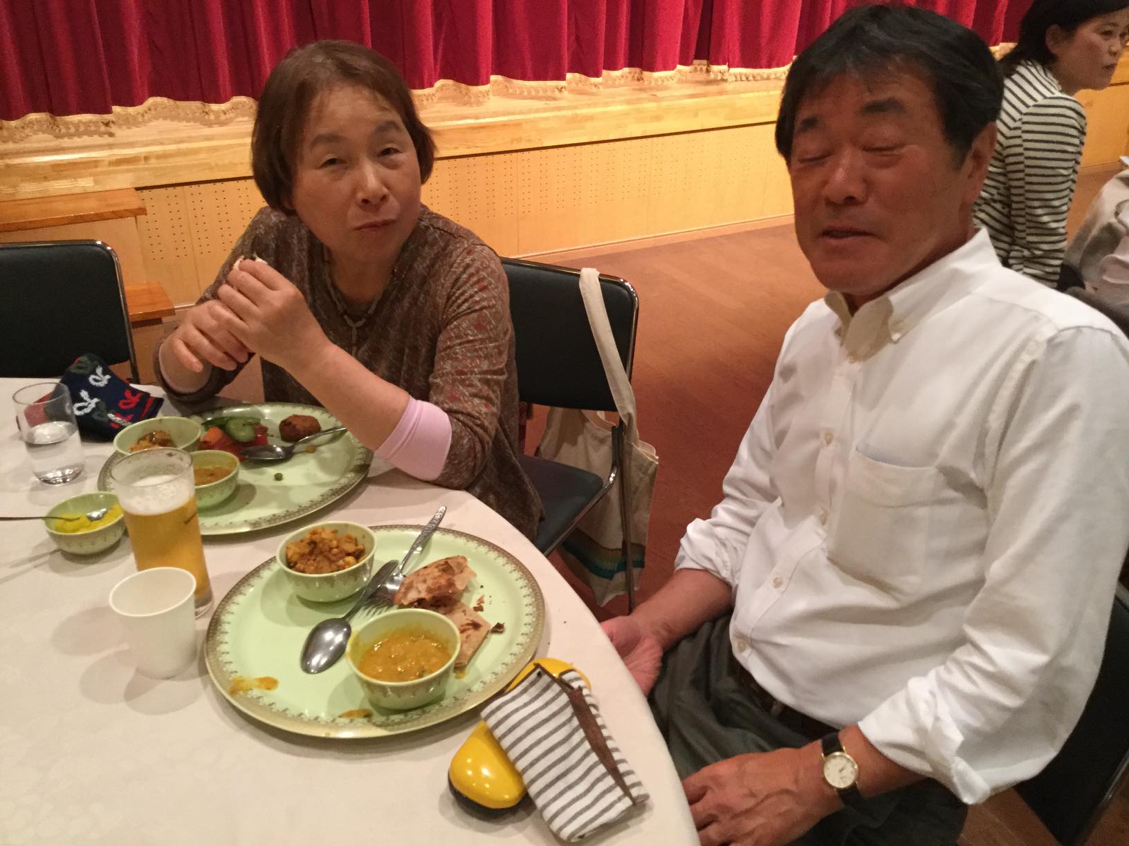 自治会会議室で打ち上げ。スタッフは平均年齢のかなり高く、我々はむしろ若手です。